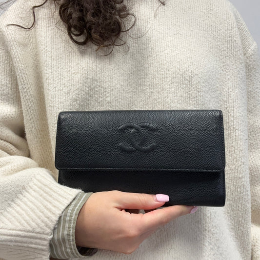Chanel Yen Wallet Timeless Large Travel Black Caviar 2012