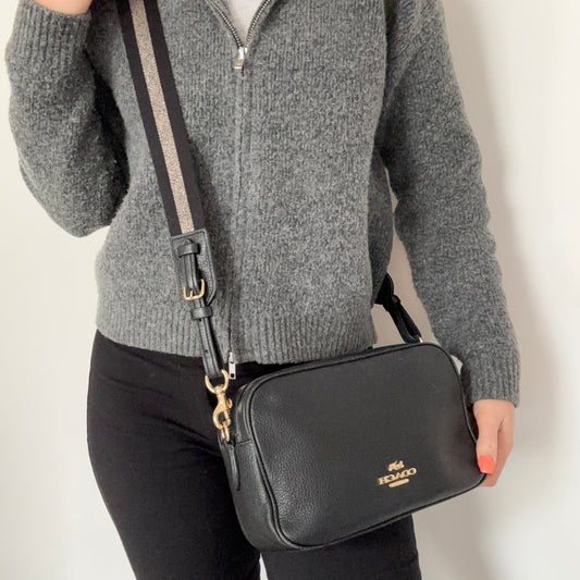 Coach Double Zip Camera Bag Black Leather with Canvas Strap