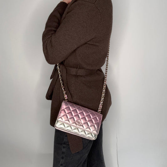 Chanel Wallet on Chain Pink Gradient Iridescent with Chunky Chain (NFID)