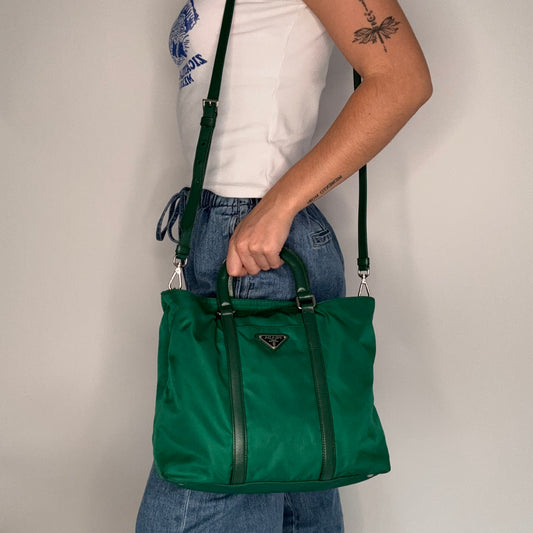 Prada 2 Way Bag Green Nylon and Leather