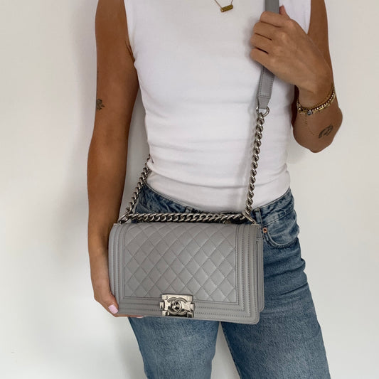 Chanel Boy Bag New Medium Grey Lambskin SHW 2017/18