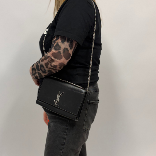 Saint Laurent Kate Medium Grain De Poudre Chain Bag Black
