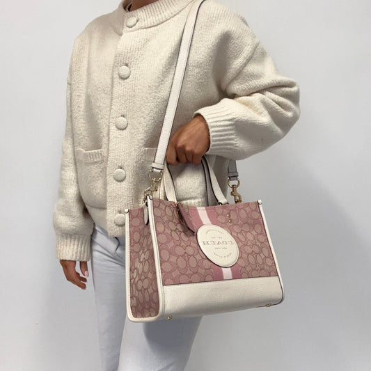 Prada Bucket Bag Logo Canvas and Pink Leather