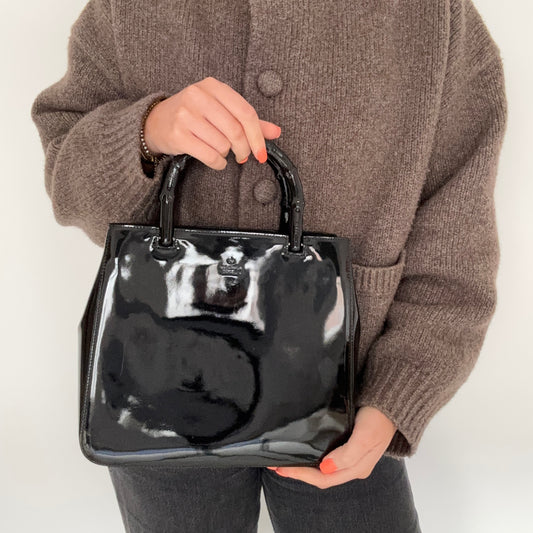 Gucci Bamboo Handle Bag All Black Patent Leather Vintage