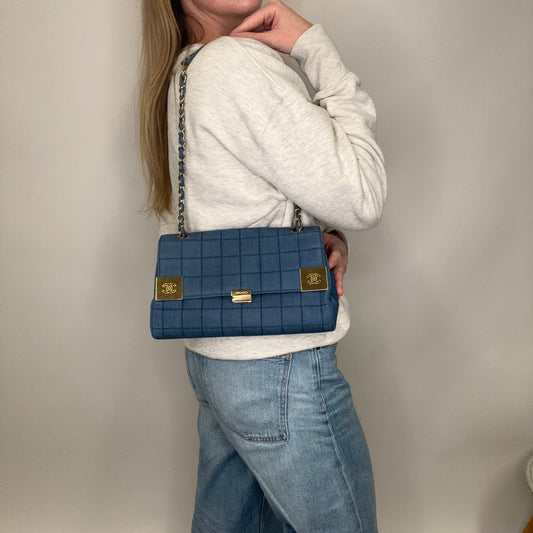 Chanel Denim Flap Bag In Square Quilt & Gold Hardware Vintage