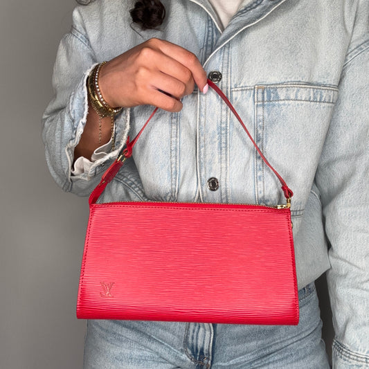 Louis Vuitton Pochette Accessoires Rouge Epi Leather Vintage SD0053