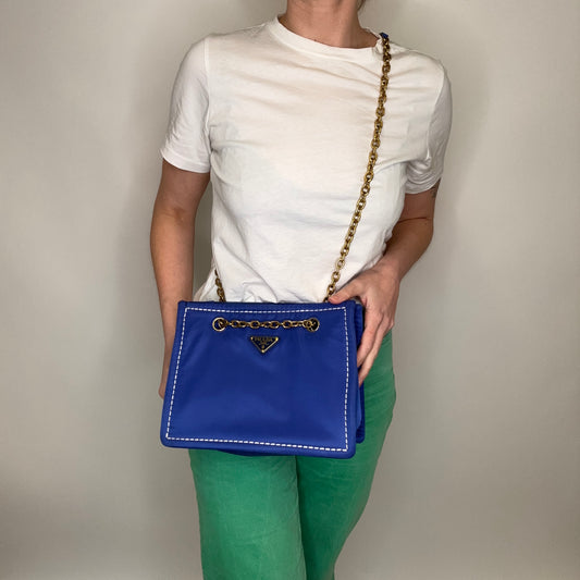 Prada Tote Indaco Nylon Contrast Stitch