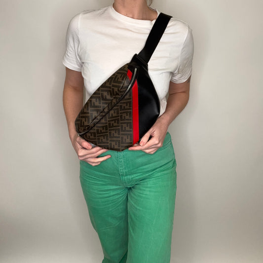Fendi Belt Bag Zucca and Navy/Red Stripe