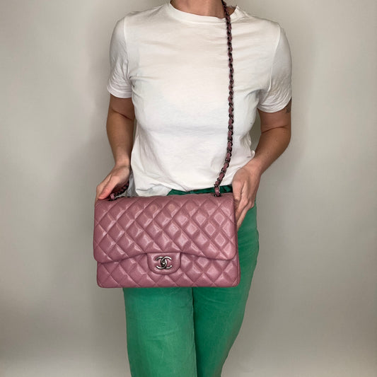 Chanel Pink Maxi Double Flap 14 Series