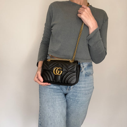 Gucci GG Marmont Mini Flap Bag – Black Leather with Gold Hardware