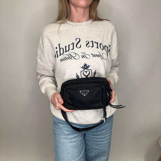 Prada Black Nylon Two Pocket Waist Bag