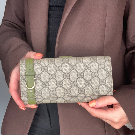 Gucci Horsebit GG Supreme Wallet With Green Panels