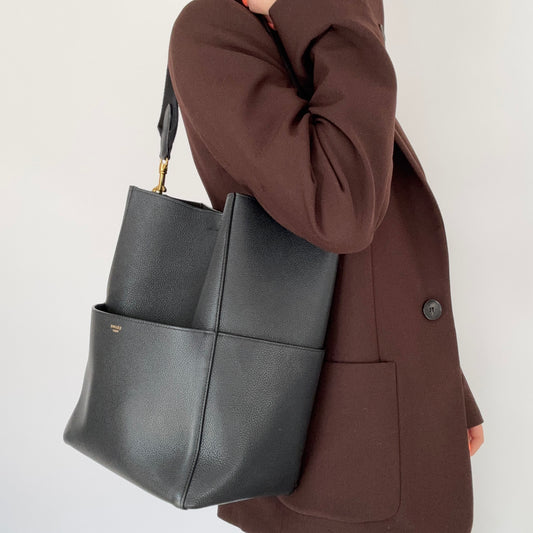 Celine Sangle Seau Shoulder Bag In Black Calfskin Leather
