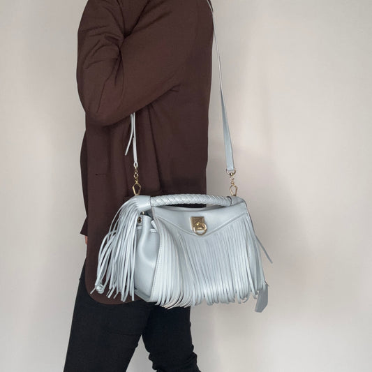 Mulberry Iris Small Silky Calf Fringe In Cloud Blue