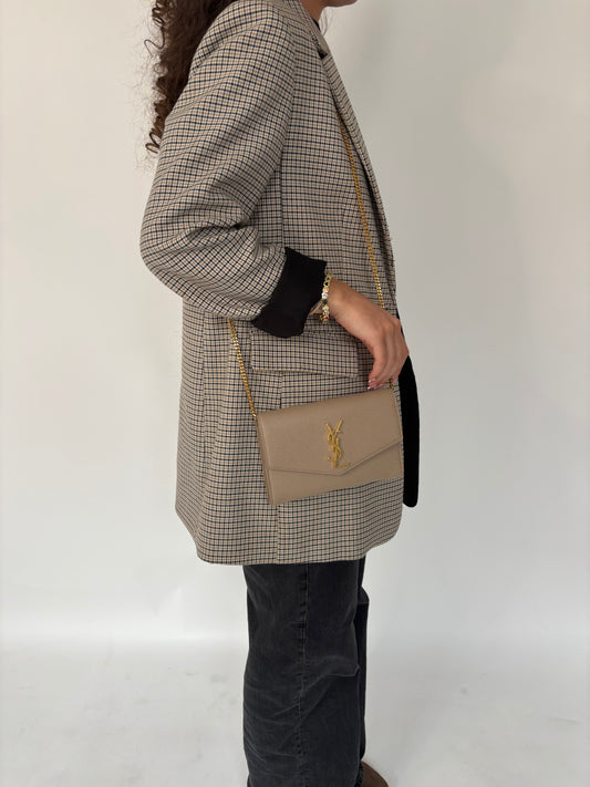 Saint Laurent Uptown Chain Wallet Beige Grain De Poudre GHW