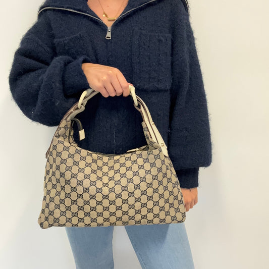 Gucci Horsebit Hobo Navy GG & Ivory Leather Vintage