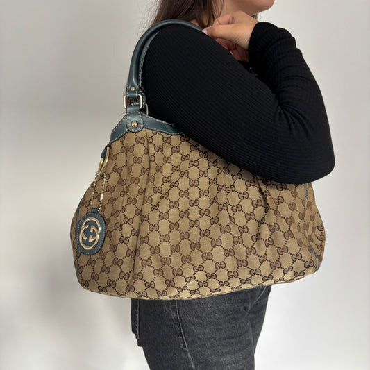 Gucci Sukey Tote GG Canvas and Metallic Blue Leather