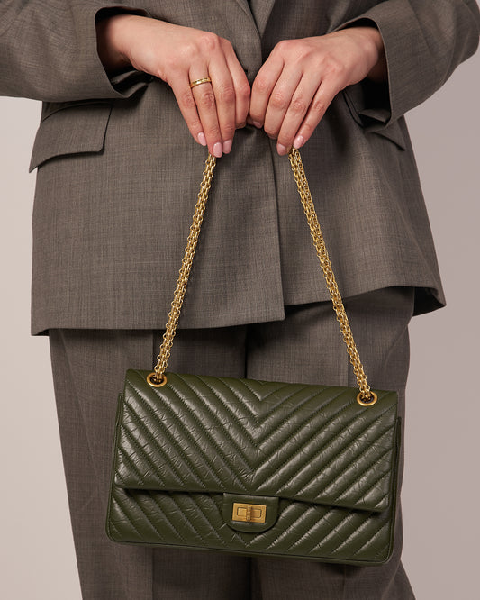 Chanel 2.55 Chevron Reissue Green With Gold Hardware 226