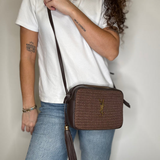 Saint Laurent Lou Camera Bag Choc Brown Raffia 2020