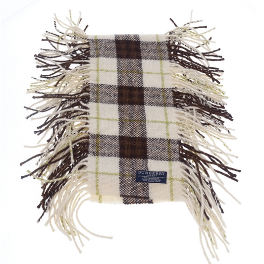 Burberry Vintage Beige and Brown Check Merino/Angora Fringe Edged Scarf
