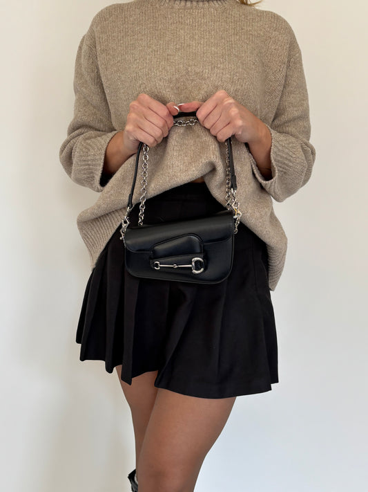 Gucci Black Leather SHW Mini Diagonal Horsebit with Chain