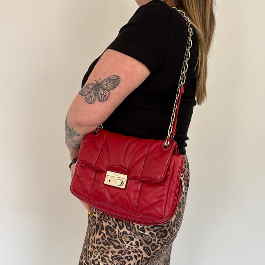 Prada Cerise Vitello Soft Leather Chain Flap Bag