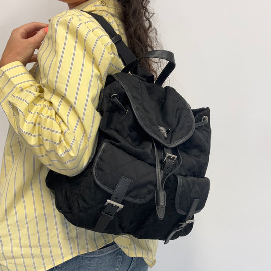 Prada Quilted Nylon Black Twin Pocket Backpack Black