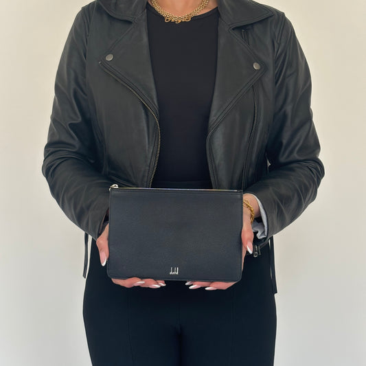 Saint Laurent Black Smooth Leather Paris Pouch With Zips GH