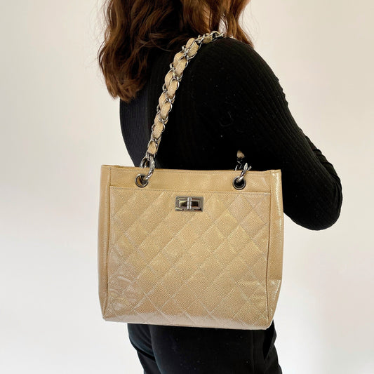 Chanel Mademoiselle Quilted Ombre Patent Caviar Leather Diamond Shine Tote