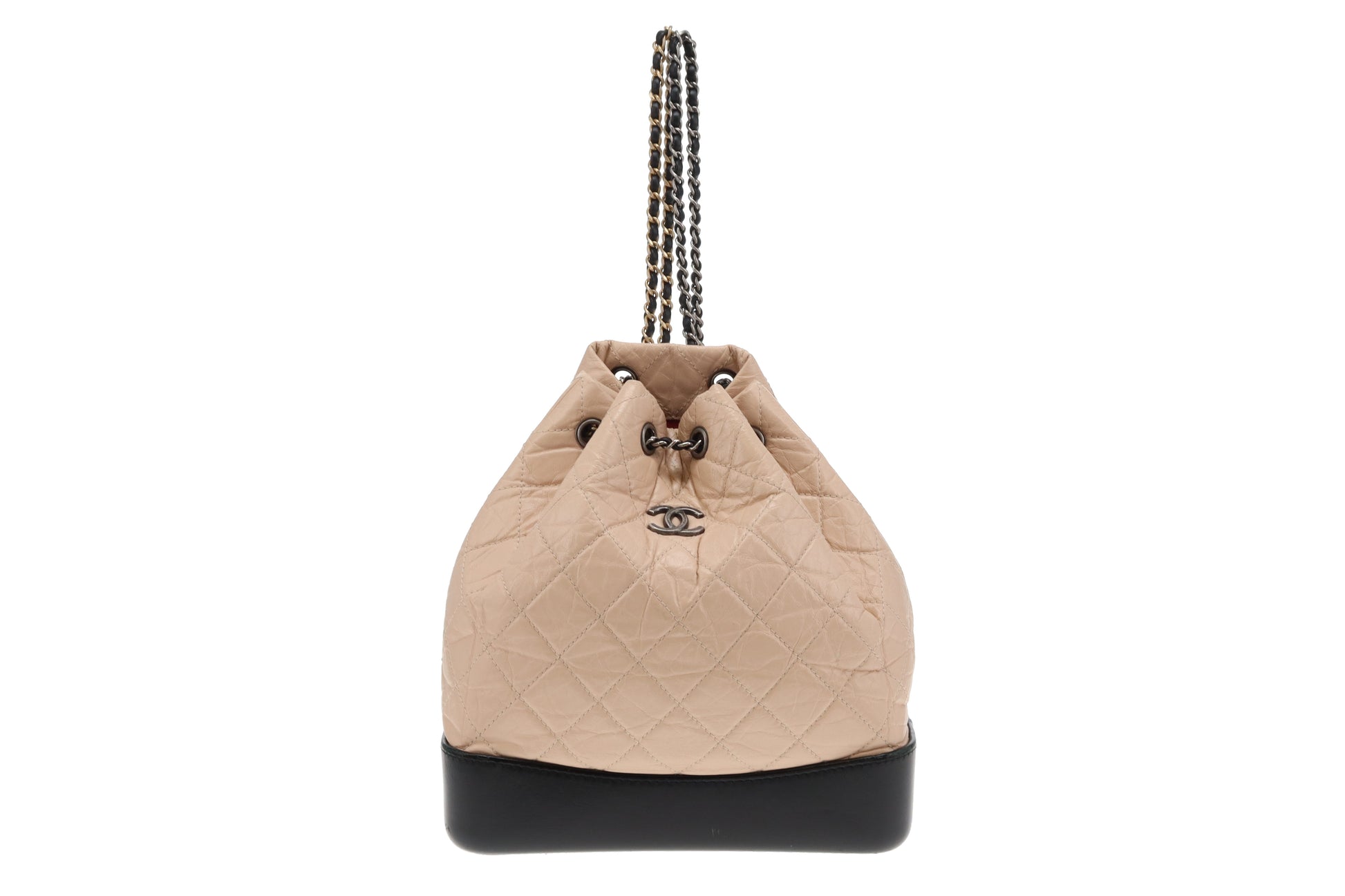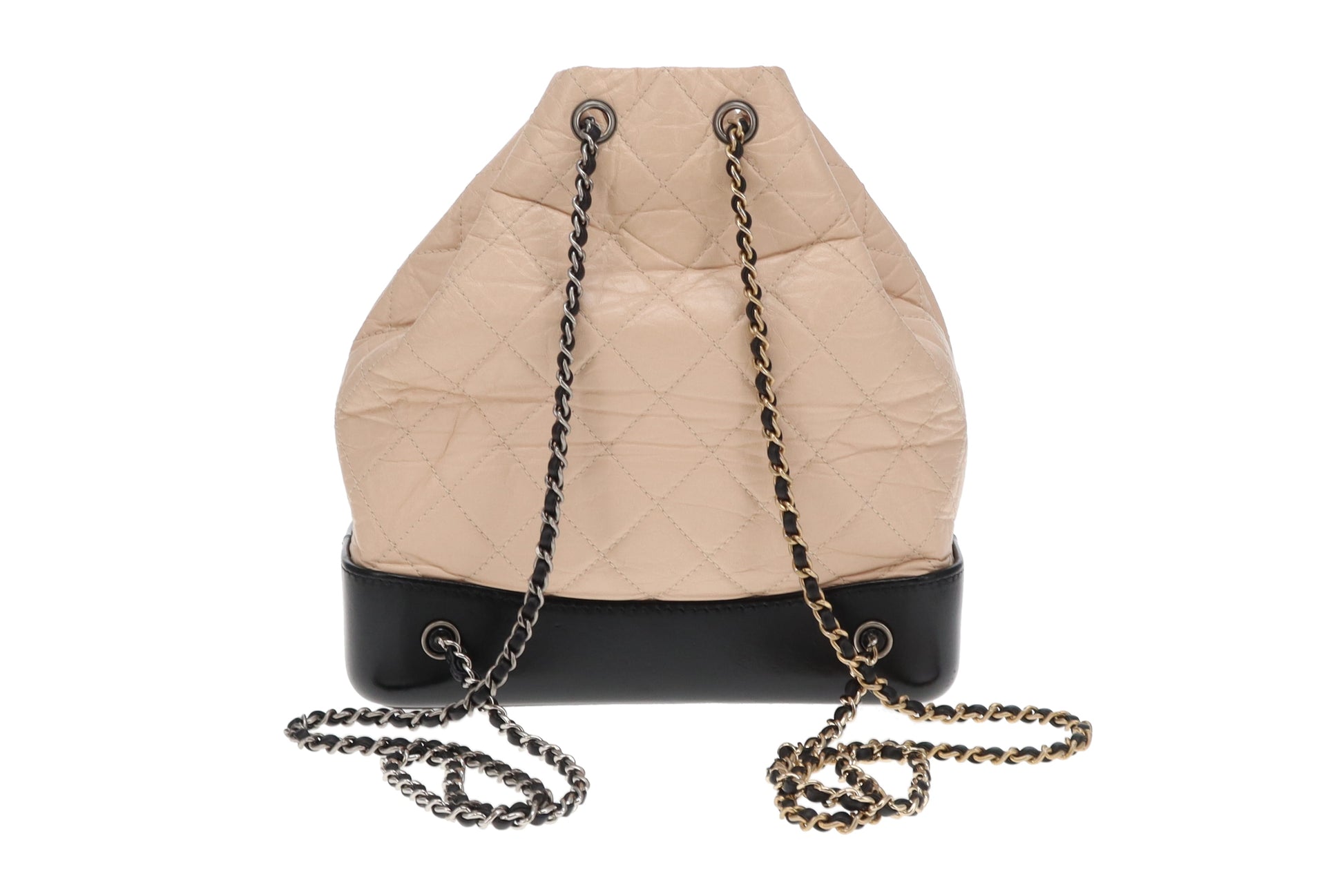 Chanel Gabrielle Backpack Beige Aged Calfskin and Black Leather 2018