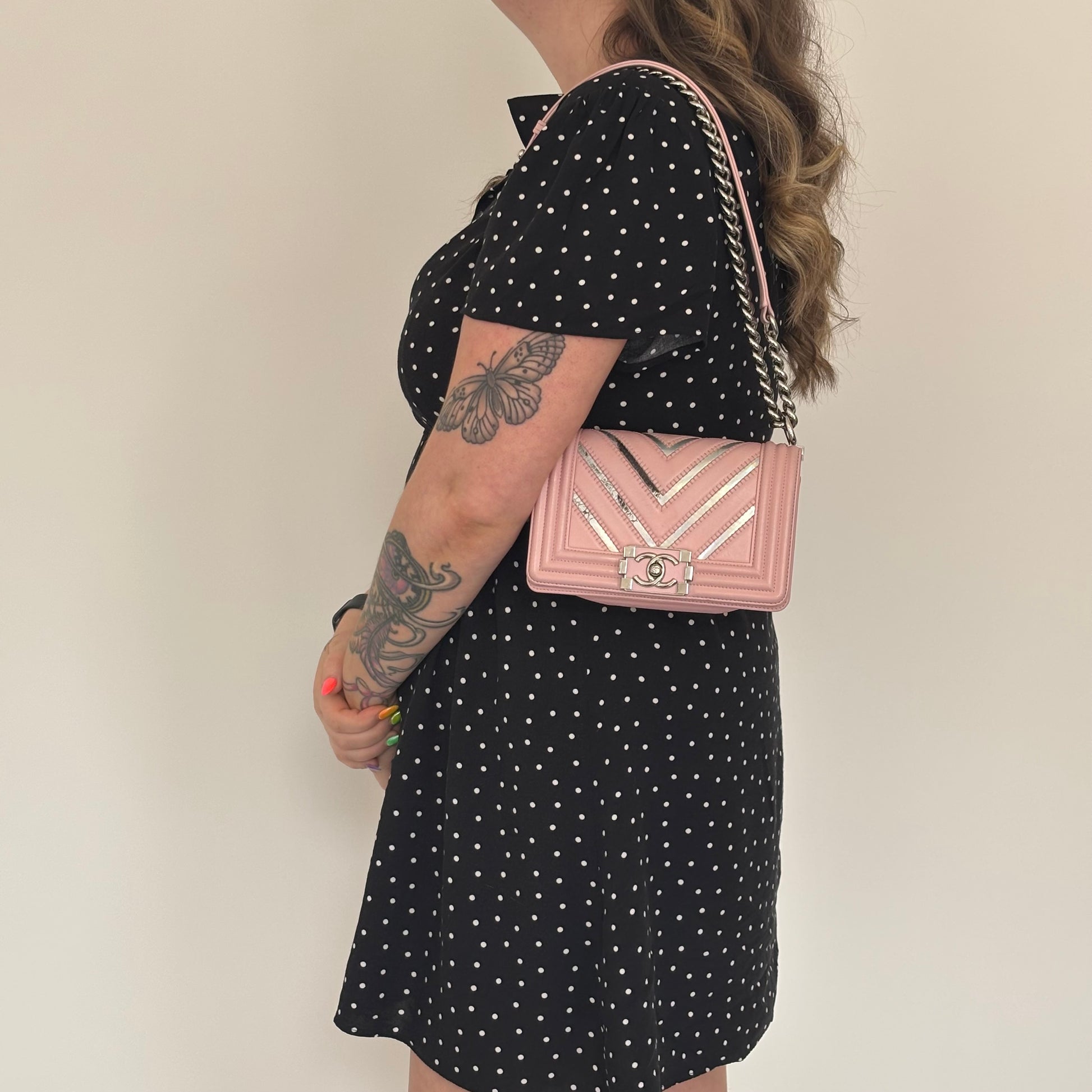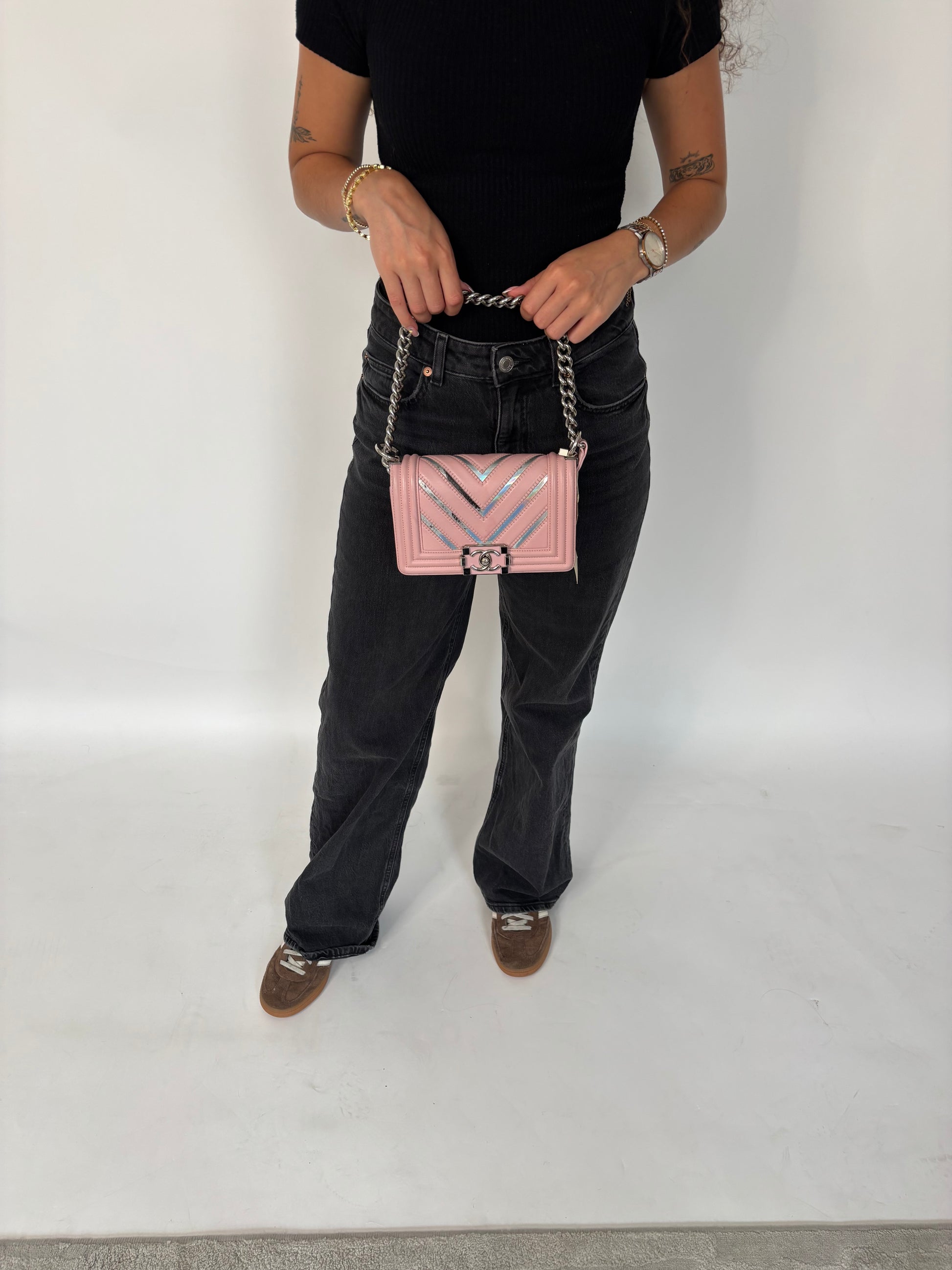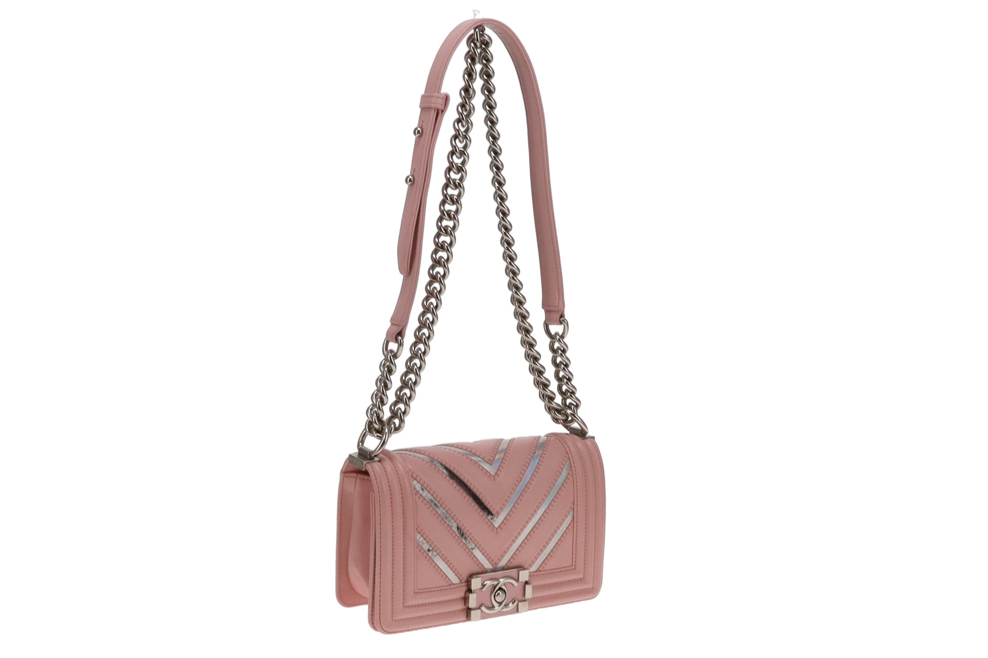 Chanel Boy Bag Small Pink and Iridescent Chevron 2016/17