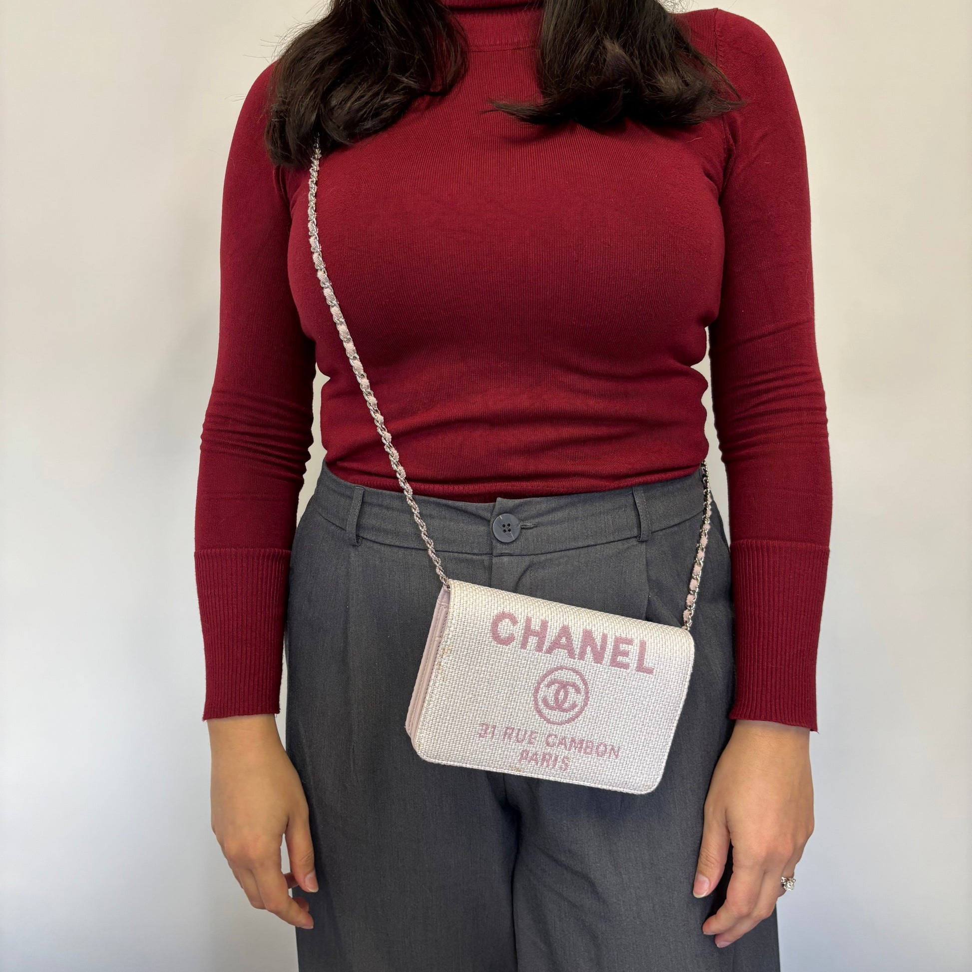 Chanel Wallet On Chain Deauville Pink Canvas SH