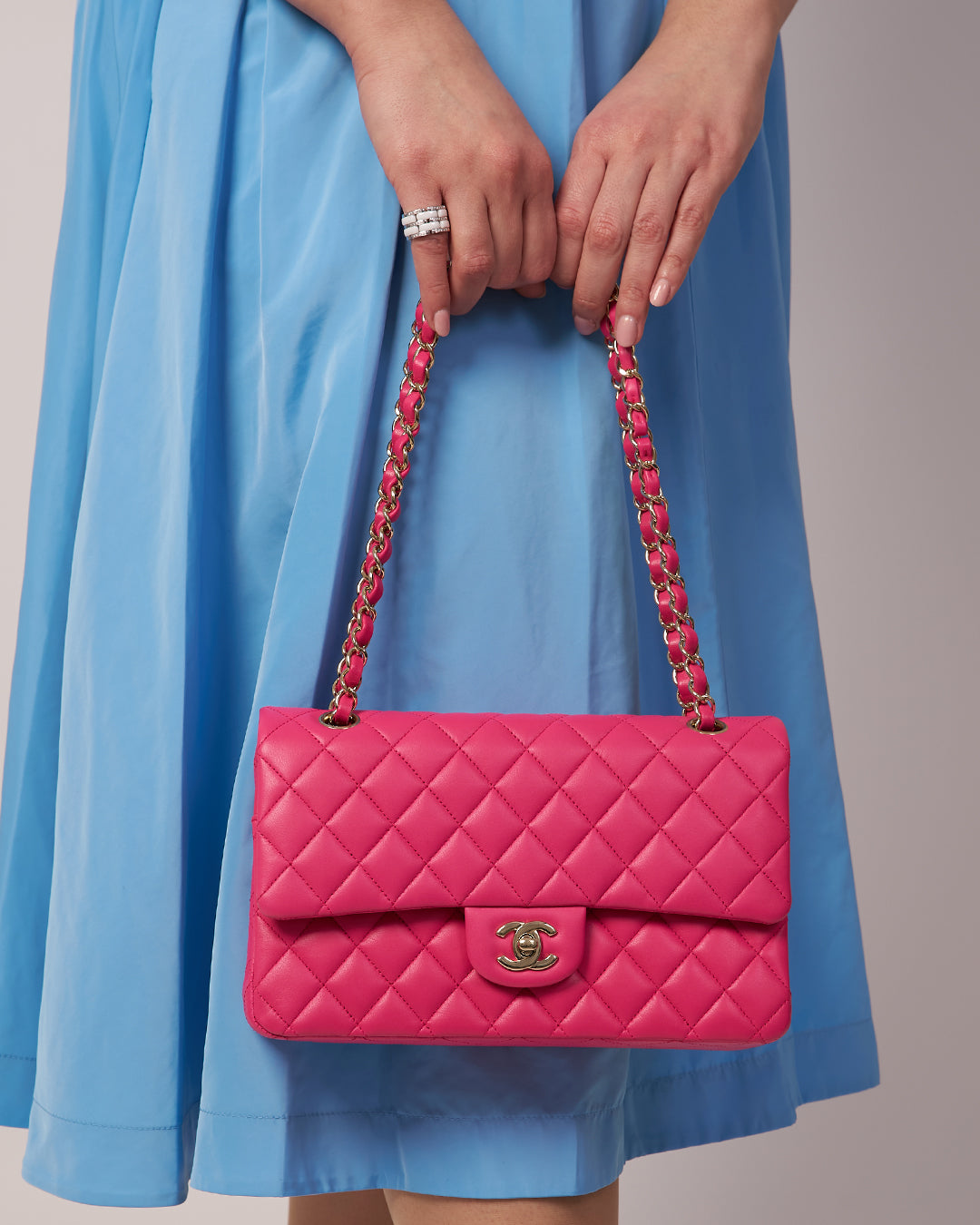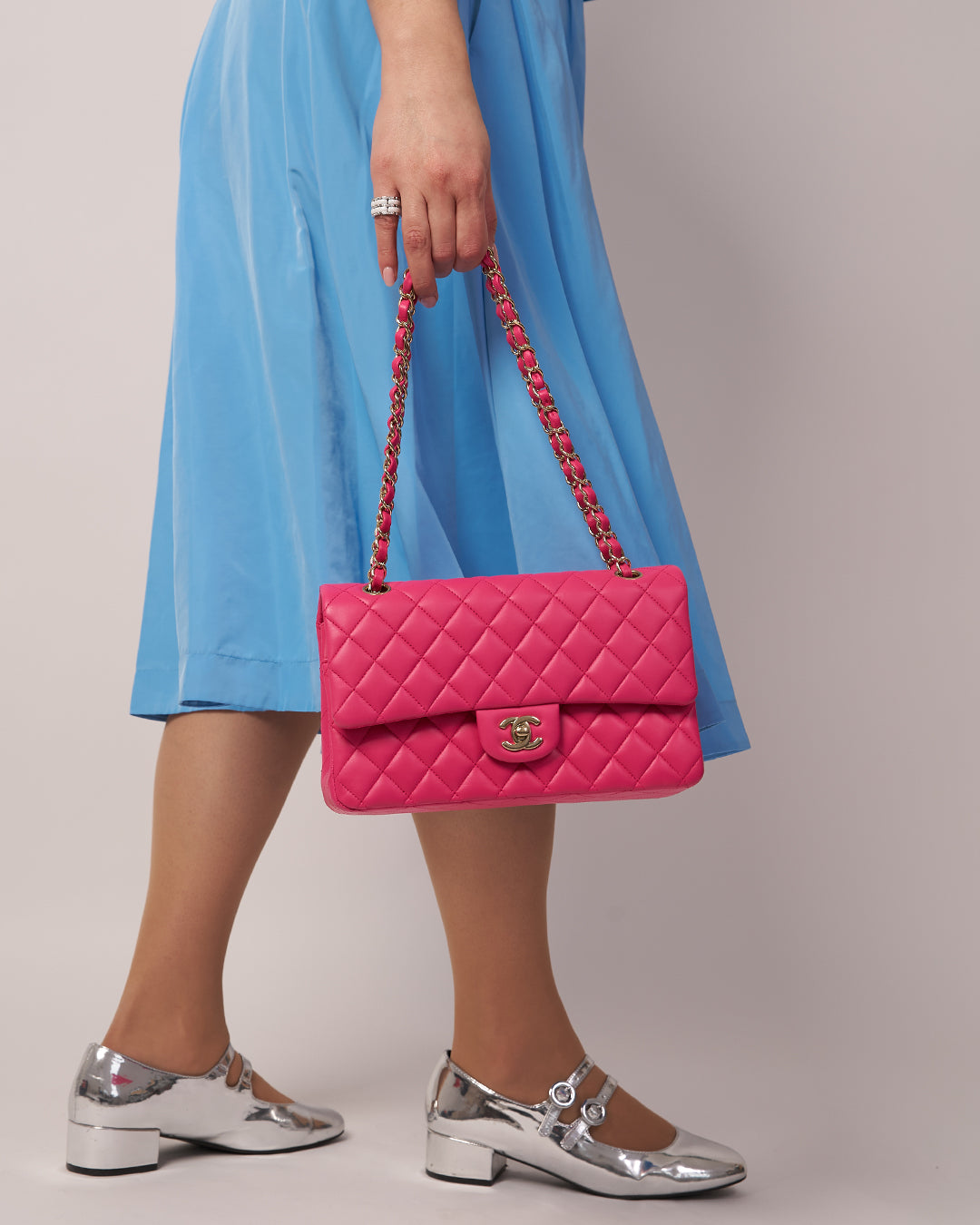 Chanel Classic Medium Double Flap Hot Pink Lambskin GMHW 2016