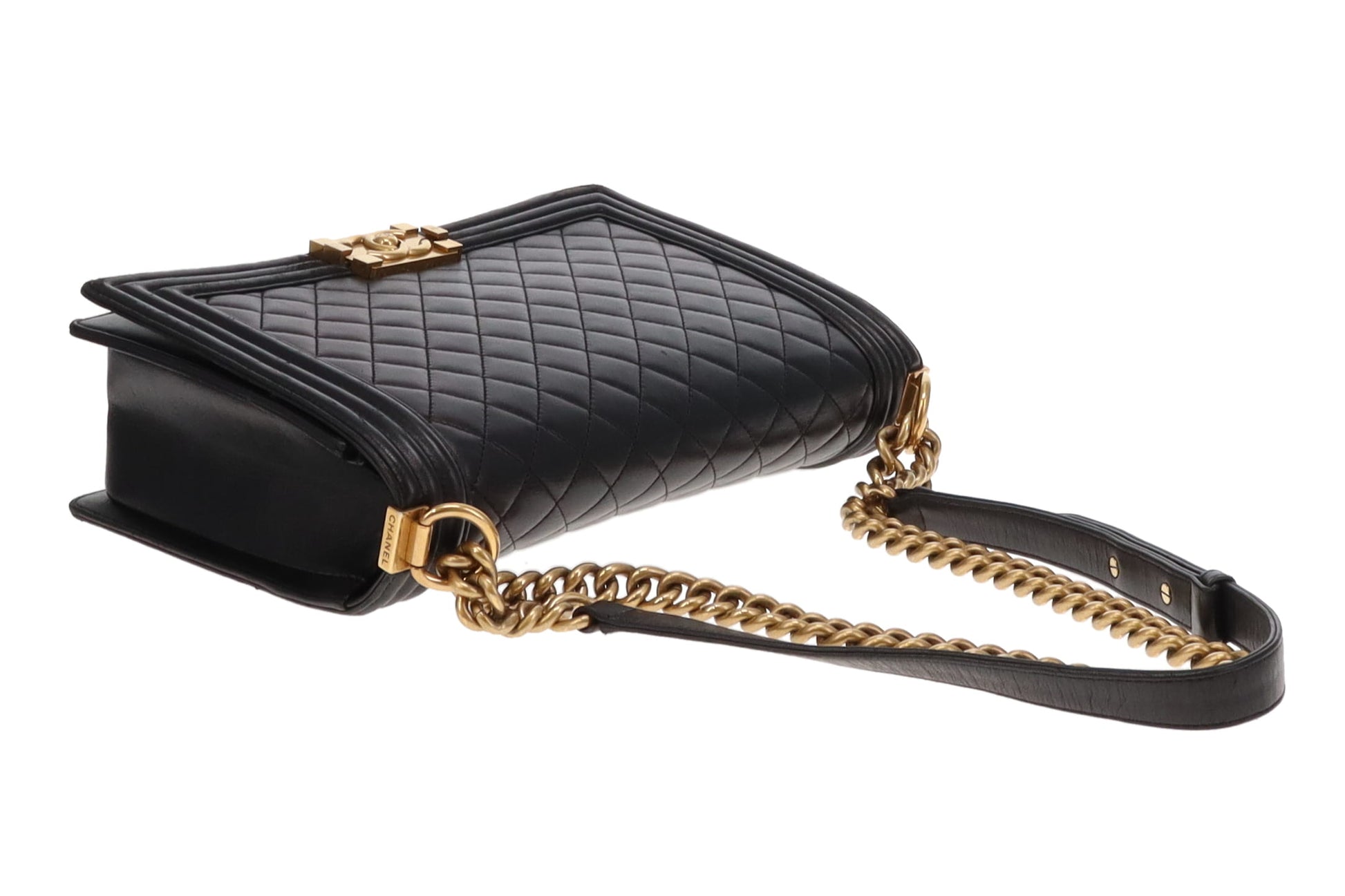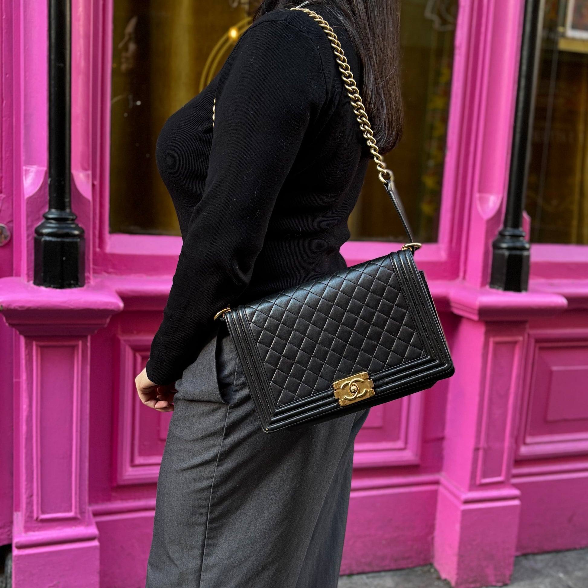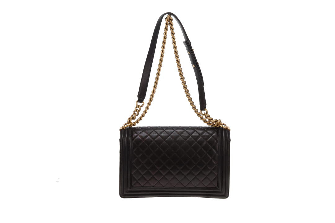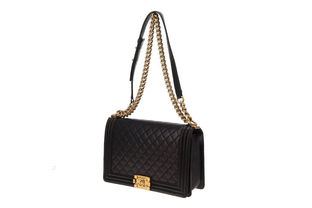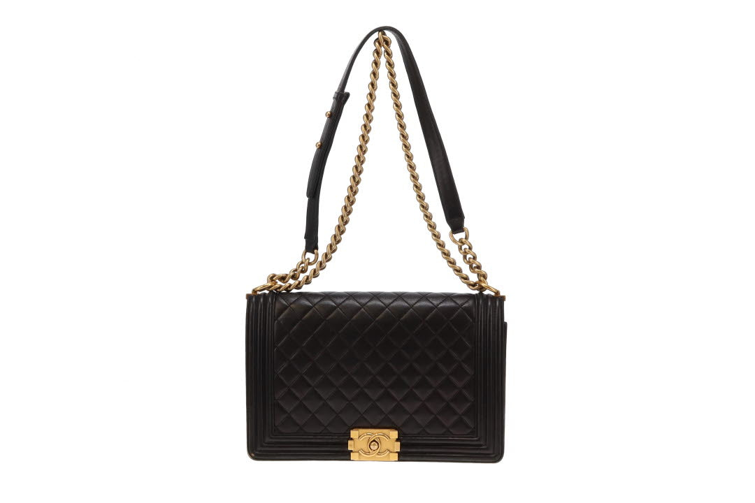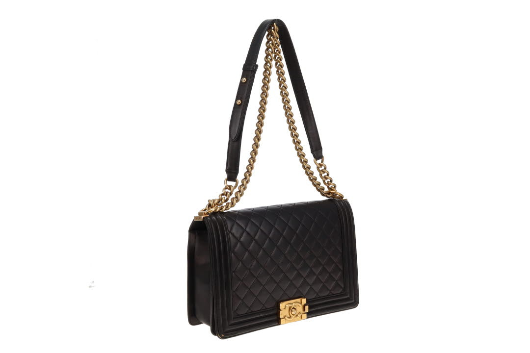 Chanel Boy Bag Large Lambskin 21 Series Black With Gold Hardware