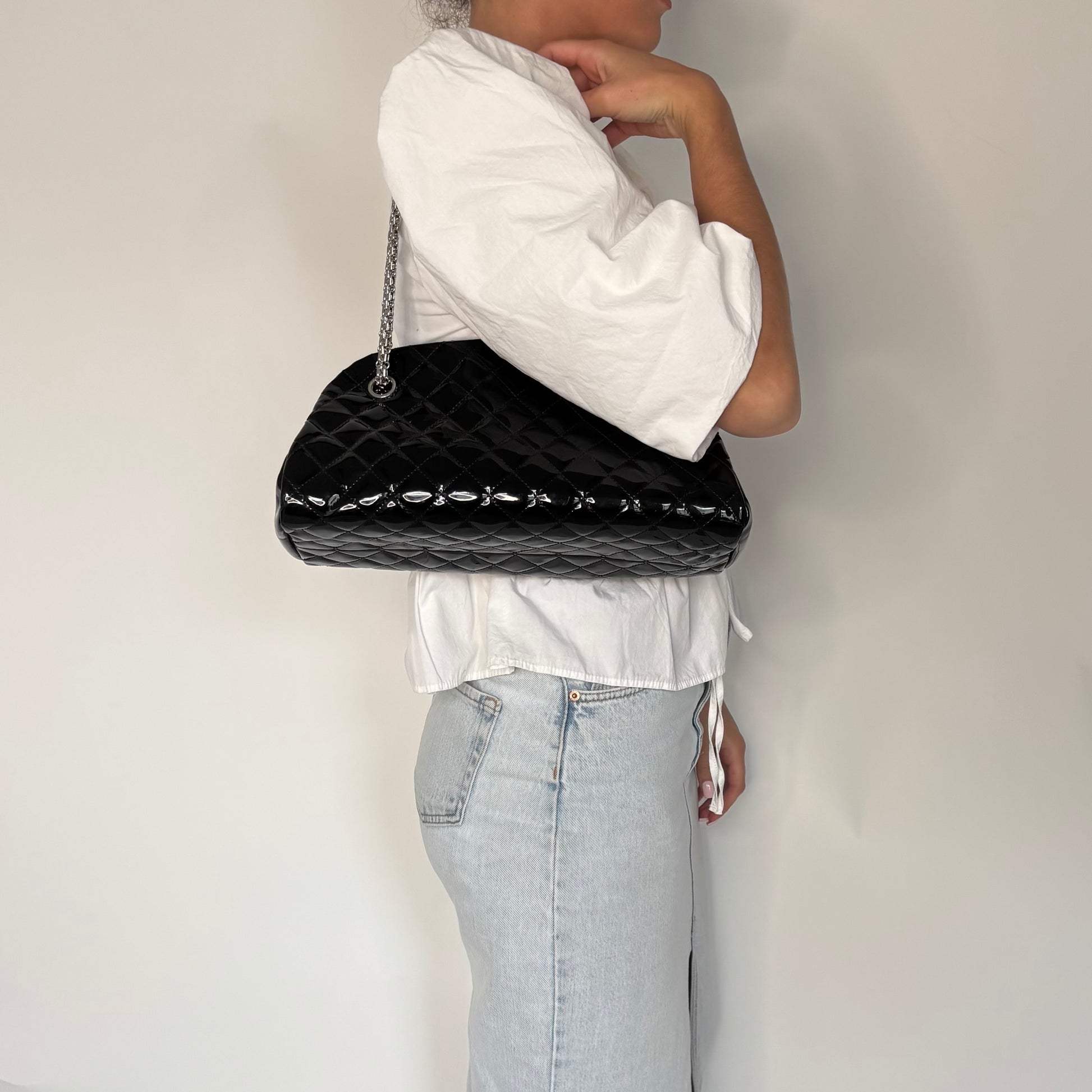 Chanel Mademoiselle Bowling Bag Black Patent Leather SHW 2011