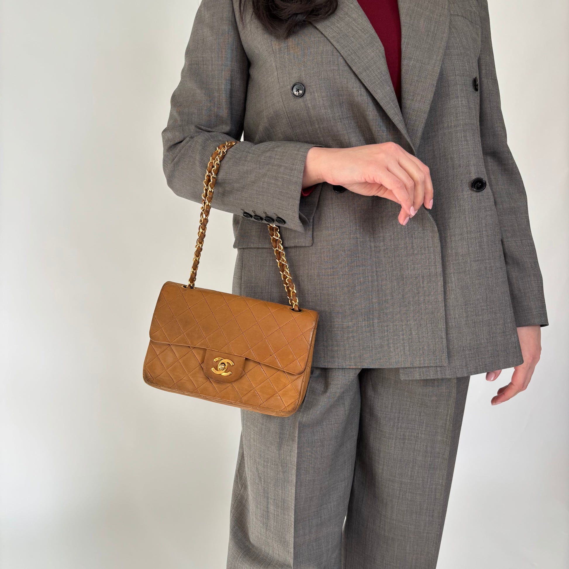 Chanel Classic Small Double Flap Tan Lambskin GH 1989