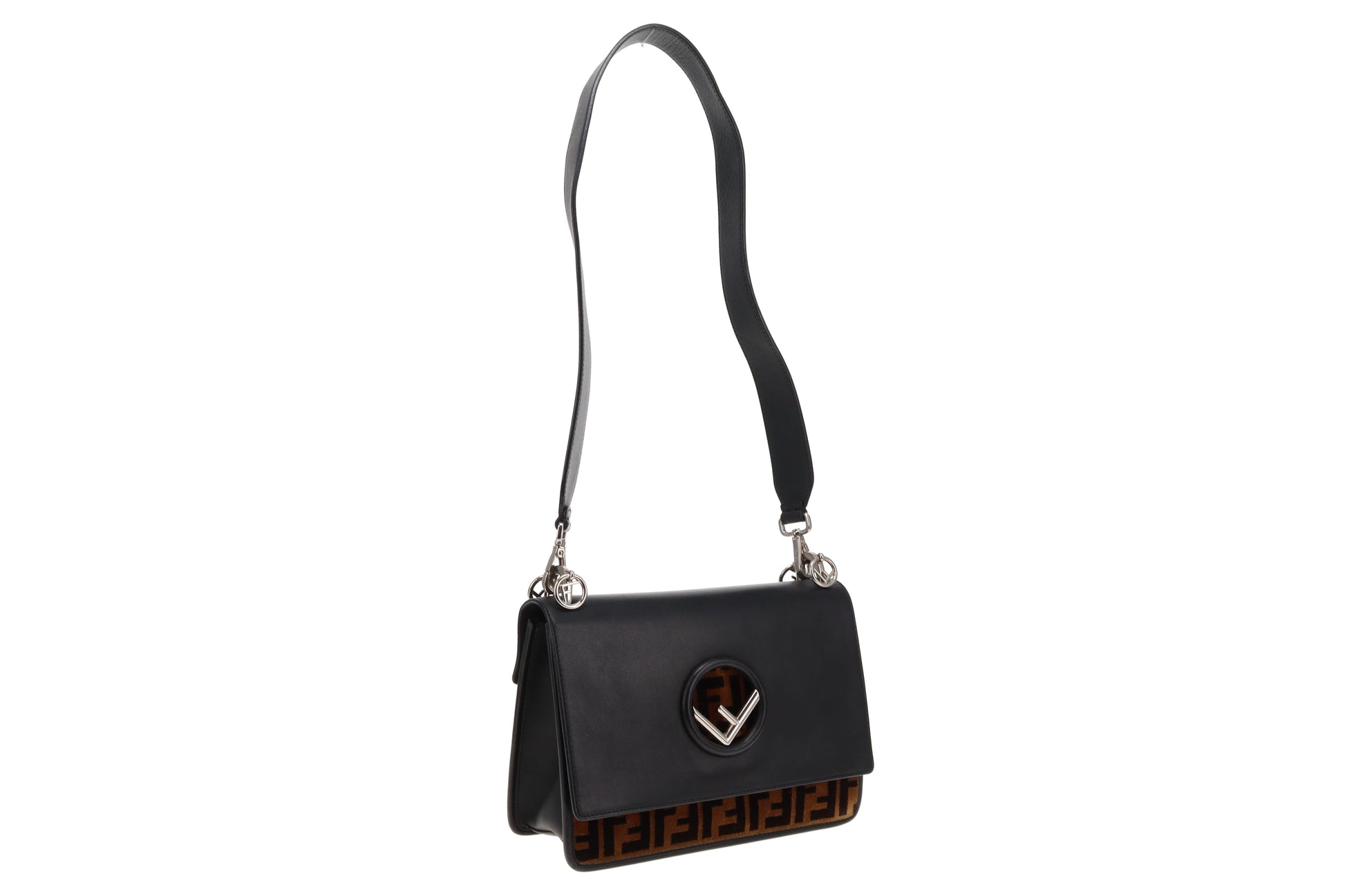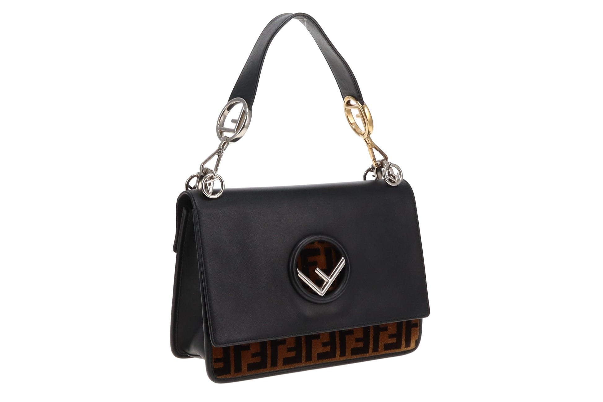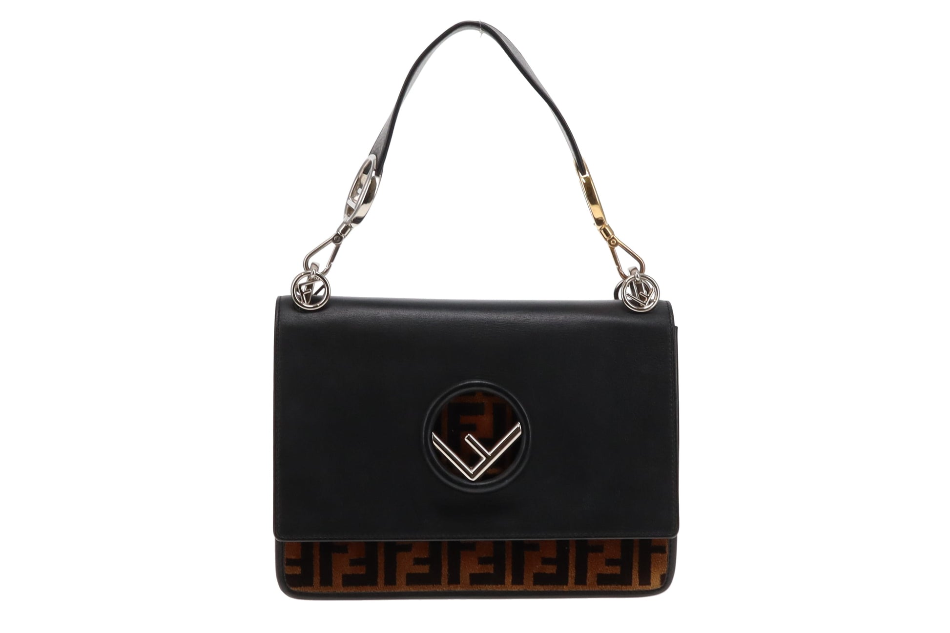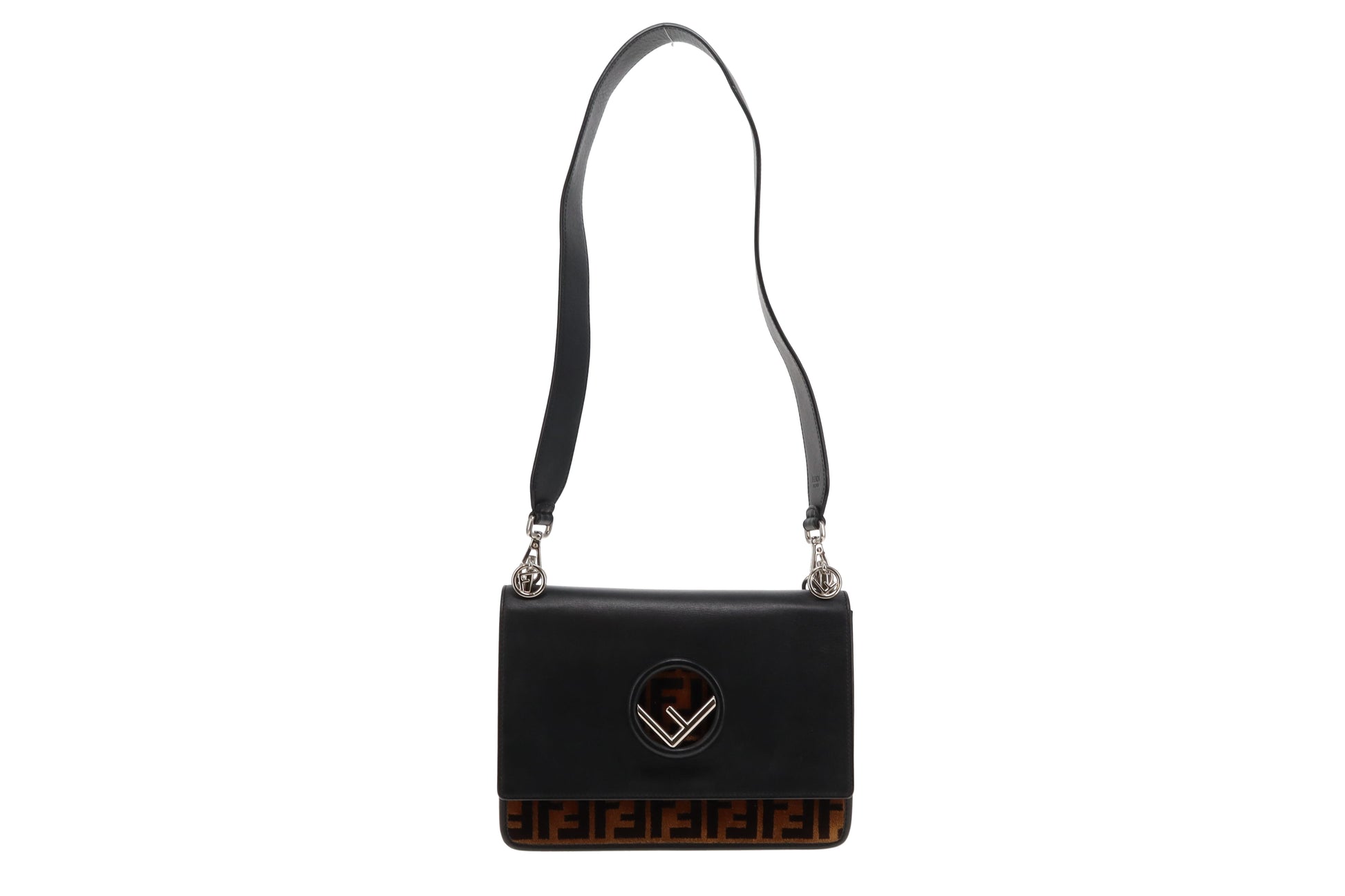 Fendi Black Leather and Velvet Zucca Detail Kan I F 2 Way Bag