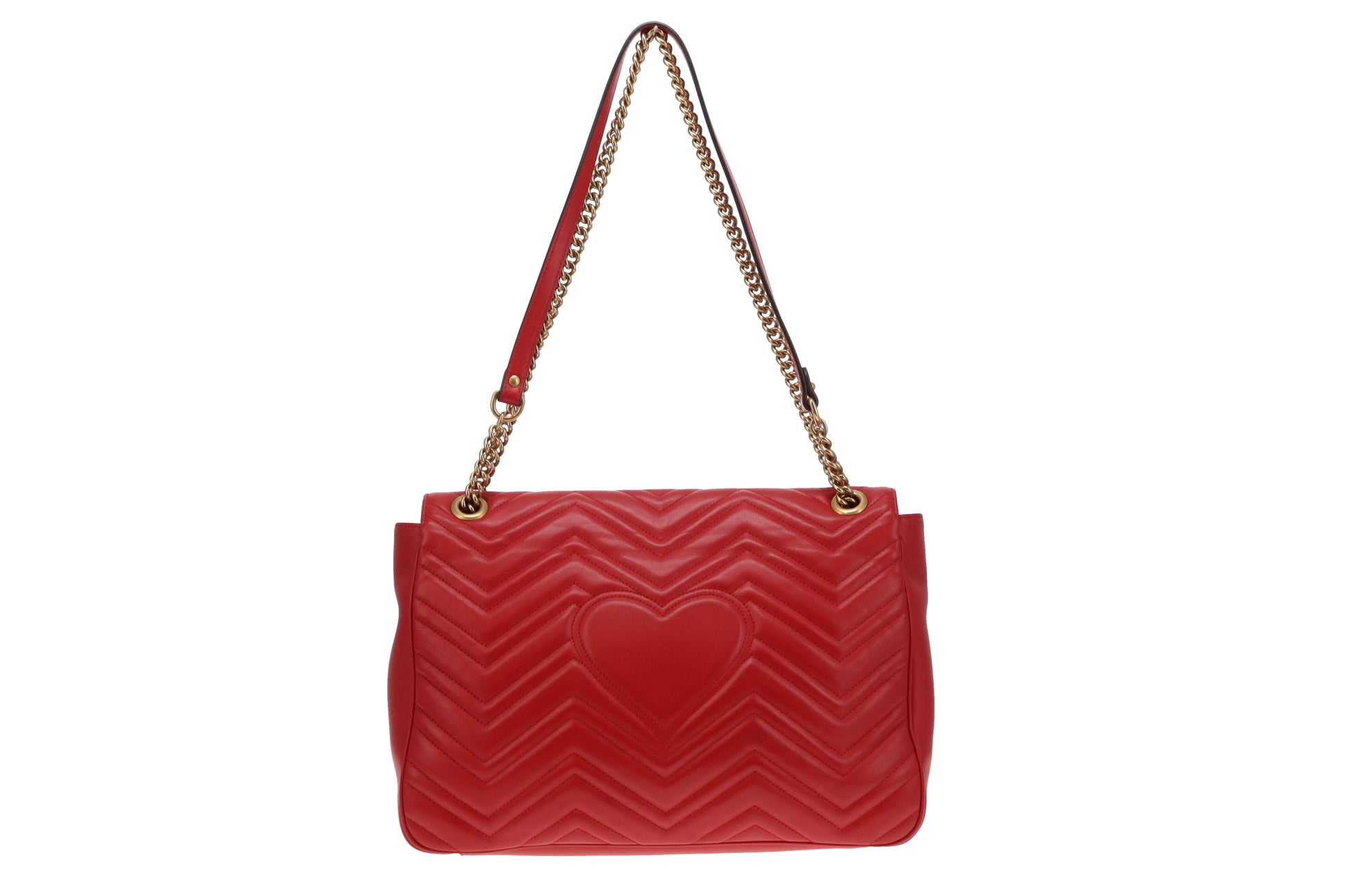 Gucci Red Chevron Leather Large Marmont Flap Bag