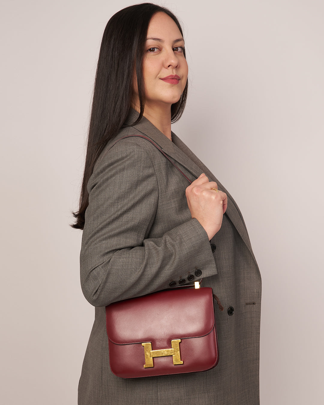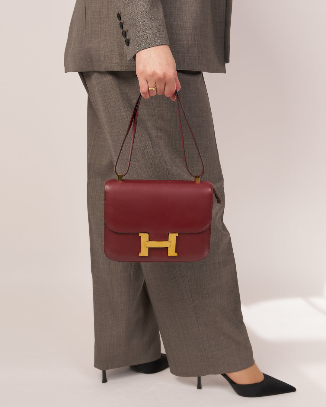 Hermes Rouge H Box Leather Vintage Constance 24 1980