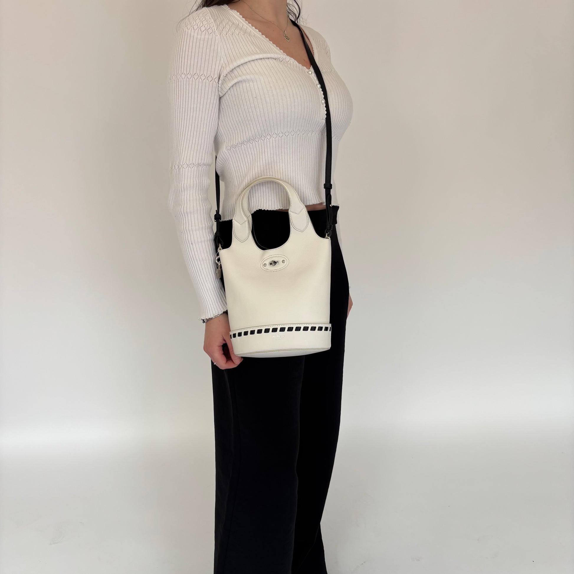 Mulberry Lily White with Contrast Black Detailing Bucket Bag