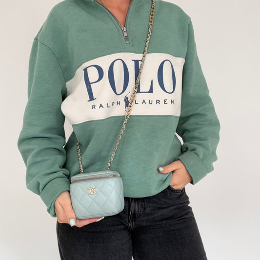 Chanel Vanity Mini Duck Egg Blue Caviar CC Chain Detail 2021