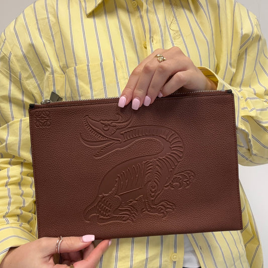 Loewe Flat Pouch Dragon Embossed Cognac