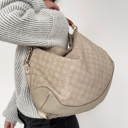 Gucci Peggy Bamboo Hobo with Strap Grey Guccissima