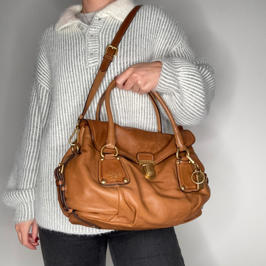 Prada Cervo Shine Nocciolo Shoulder Bag