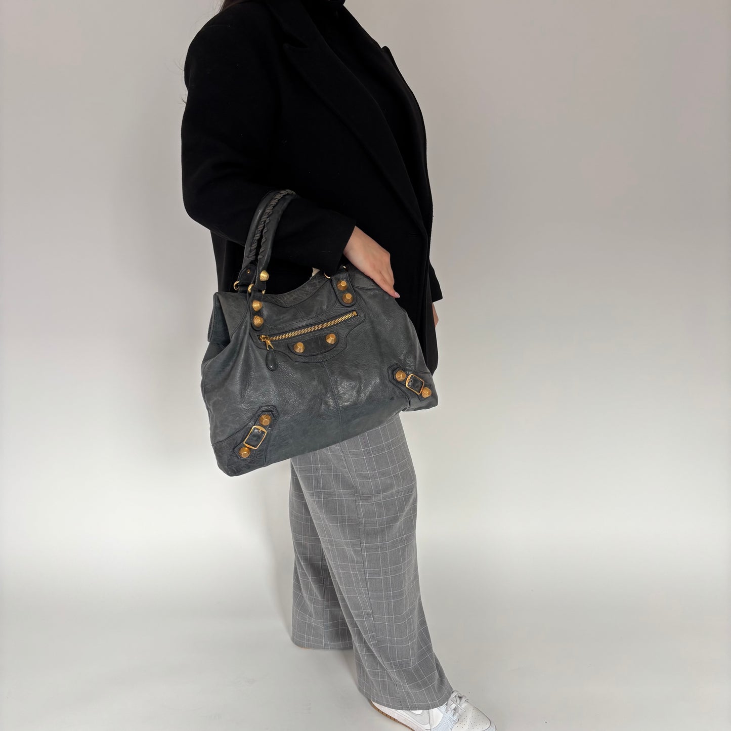 Balenciaga Anthracite Lambskin Leather Giant 21 Brief Bag