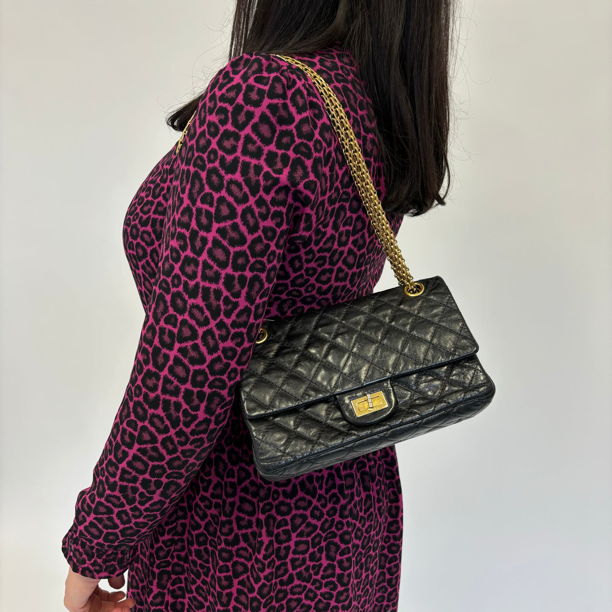 Chanel 2.55 Black Glazed Calfskin Reissue 224 Accordion Flap Bag 2008/09