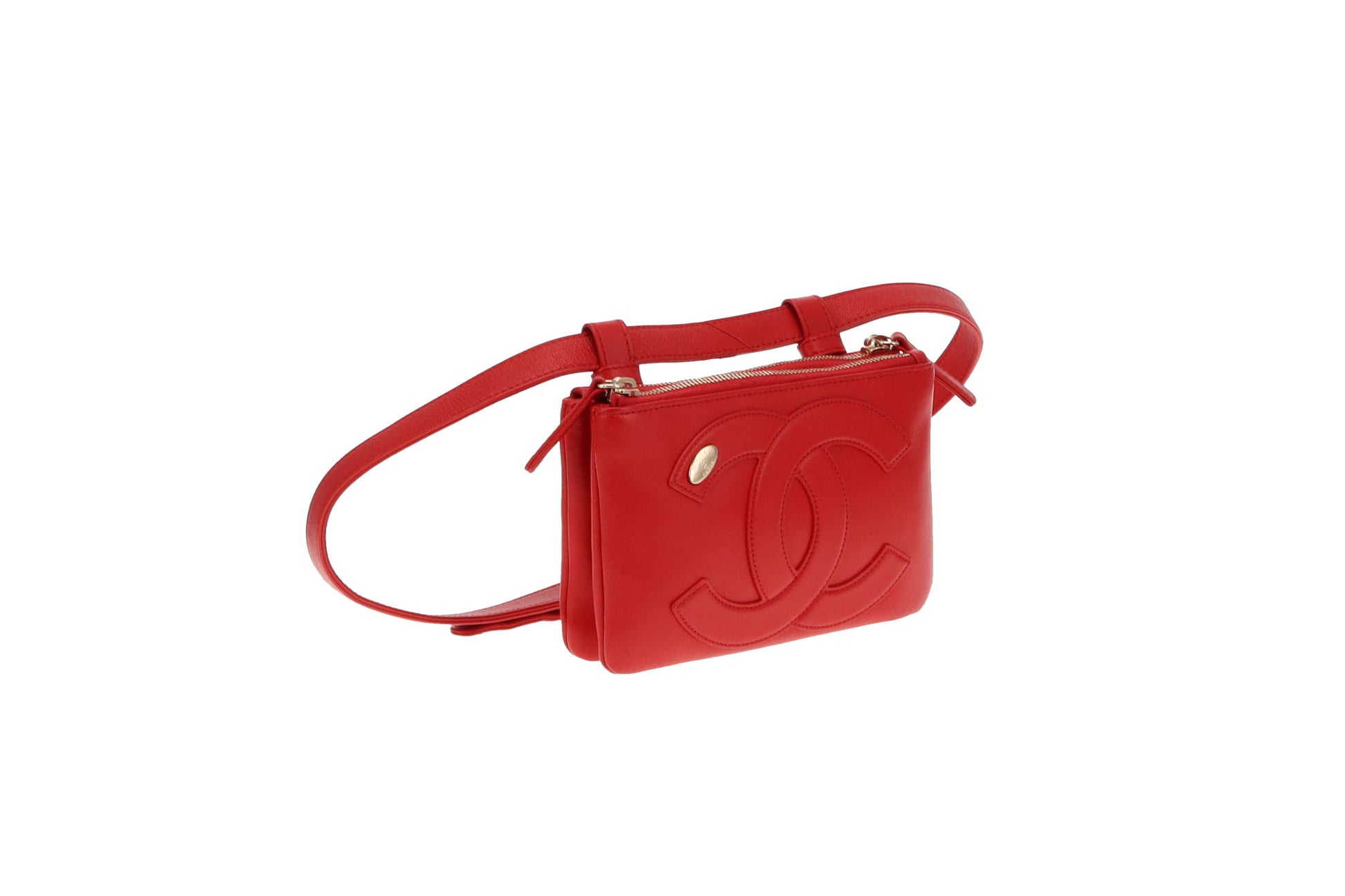 Chanel Red Lambskin CC Mania Belt Bag 2019