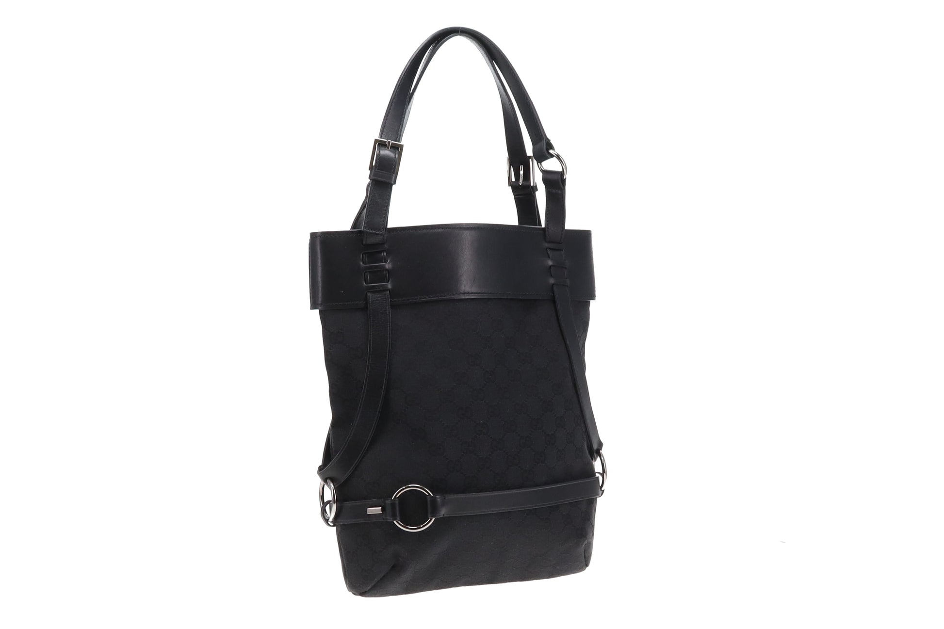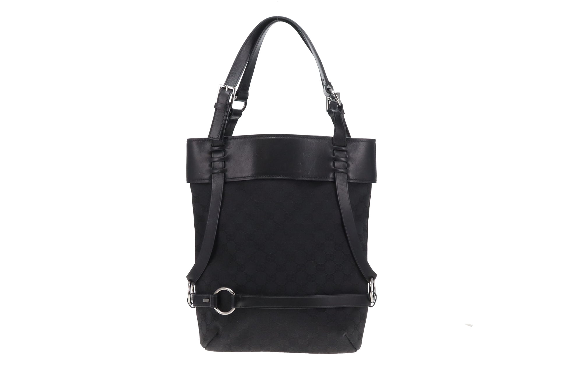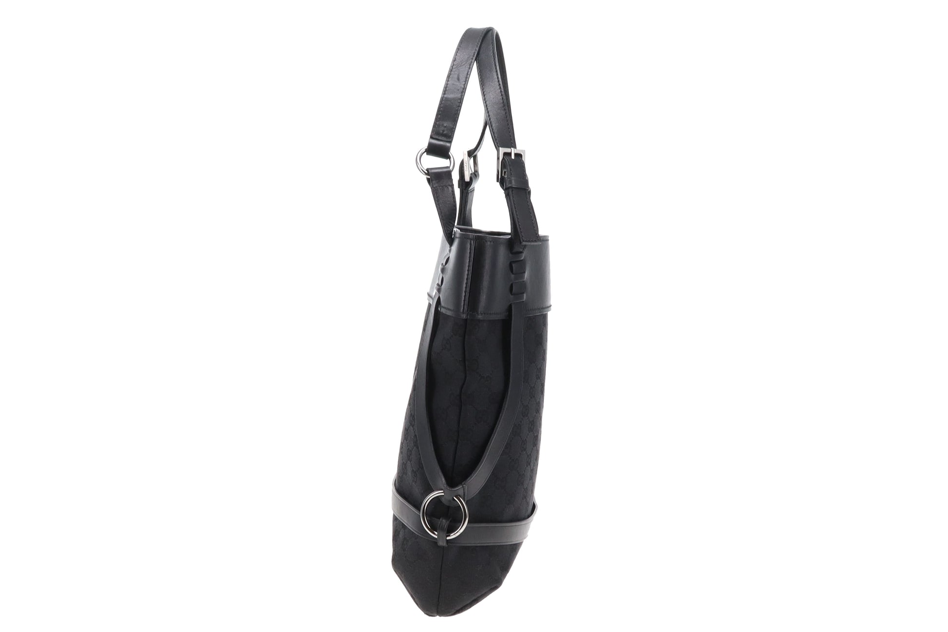 Gucci Snaffle Shoulder Bag Vintage In Black GG Canvas & Leather