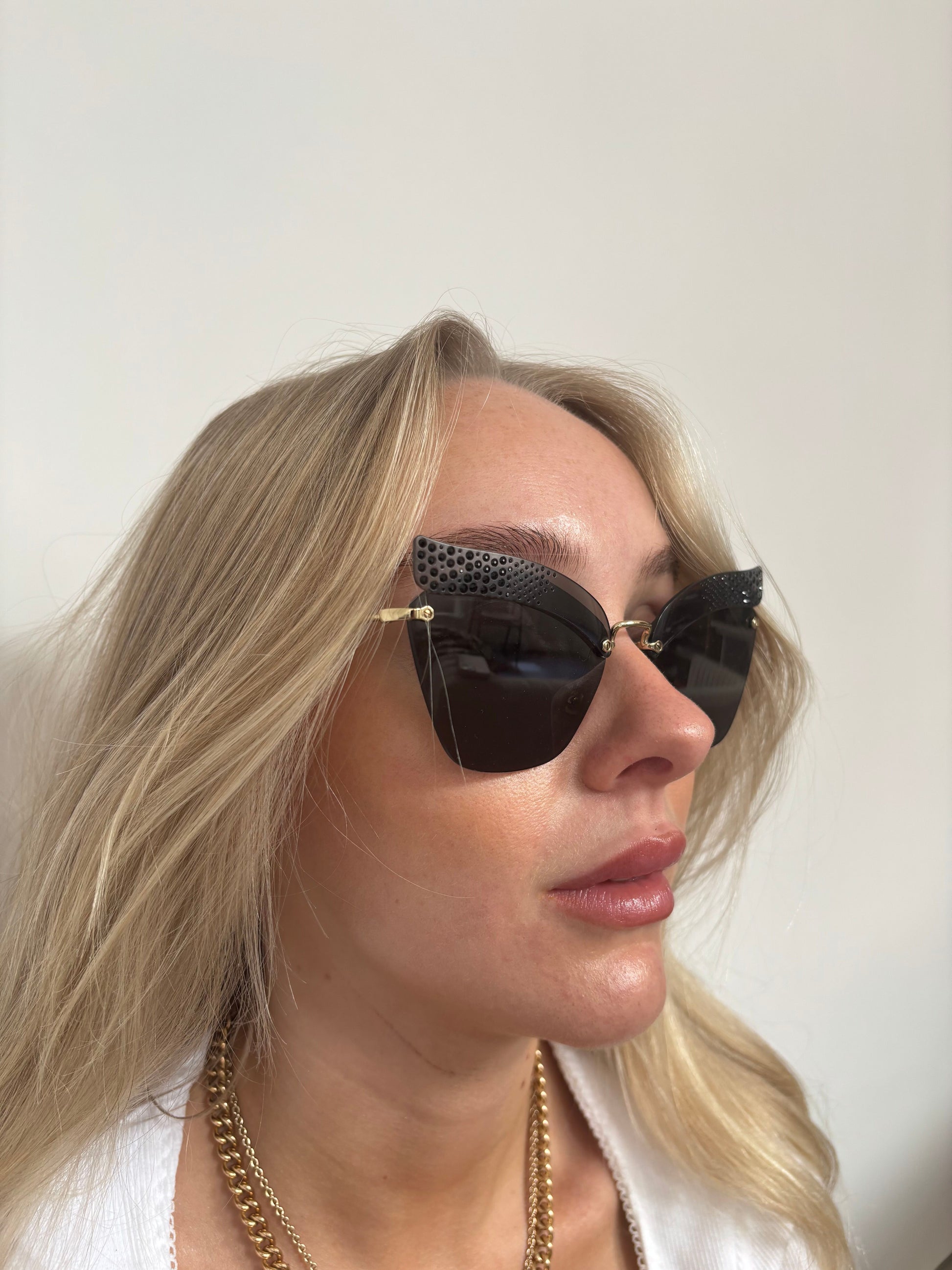 Miu Miu Black and Diamante Detail SMU 56T Sunglasses