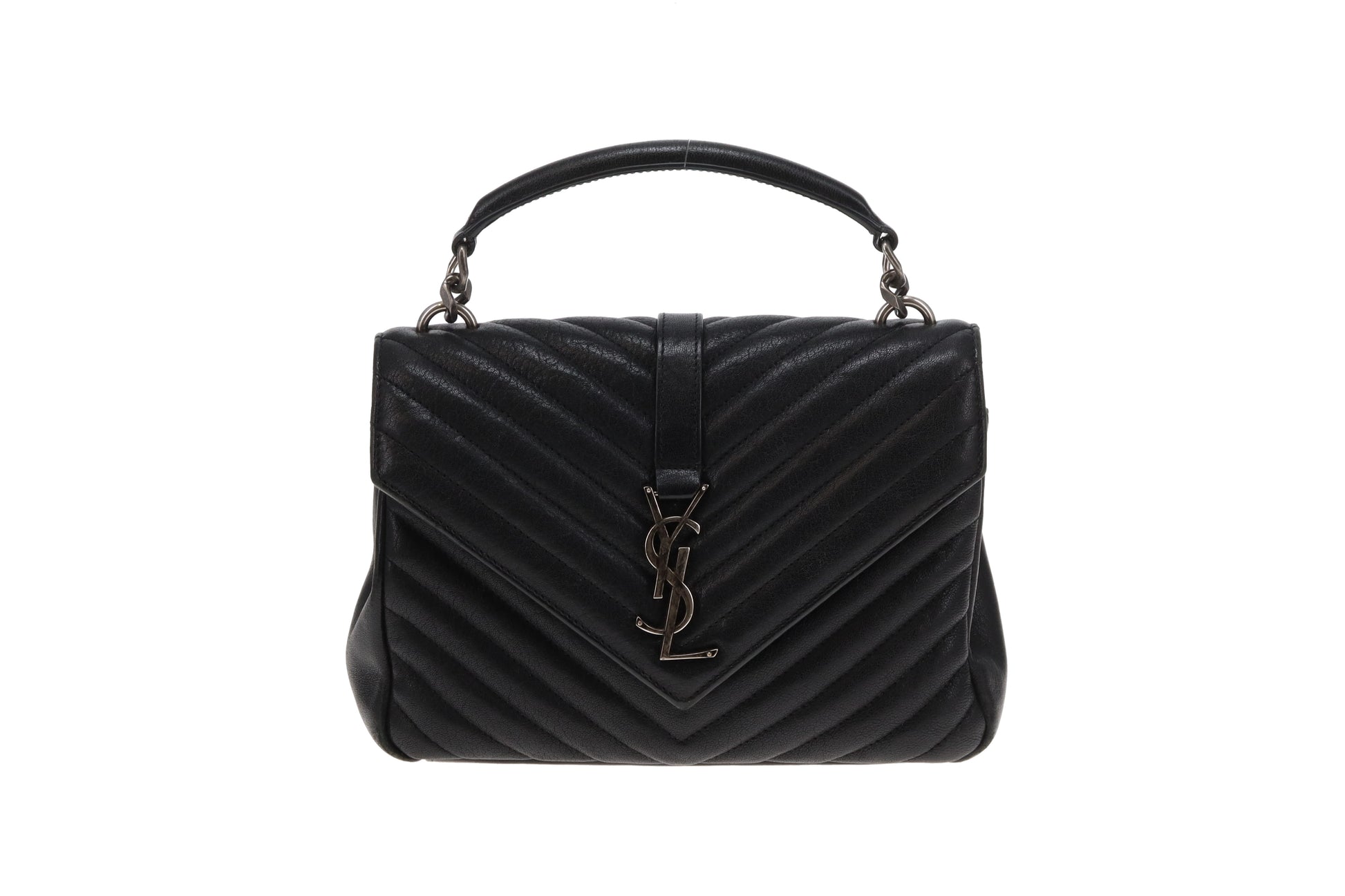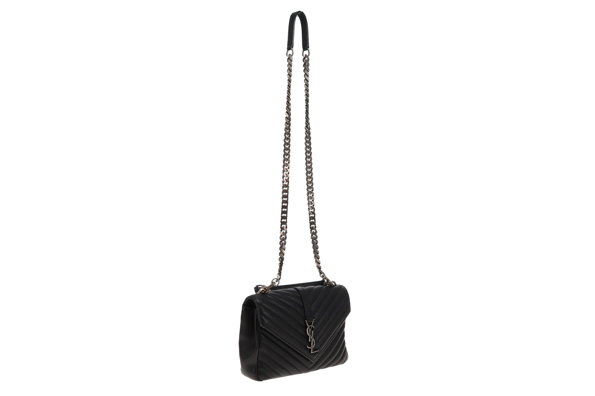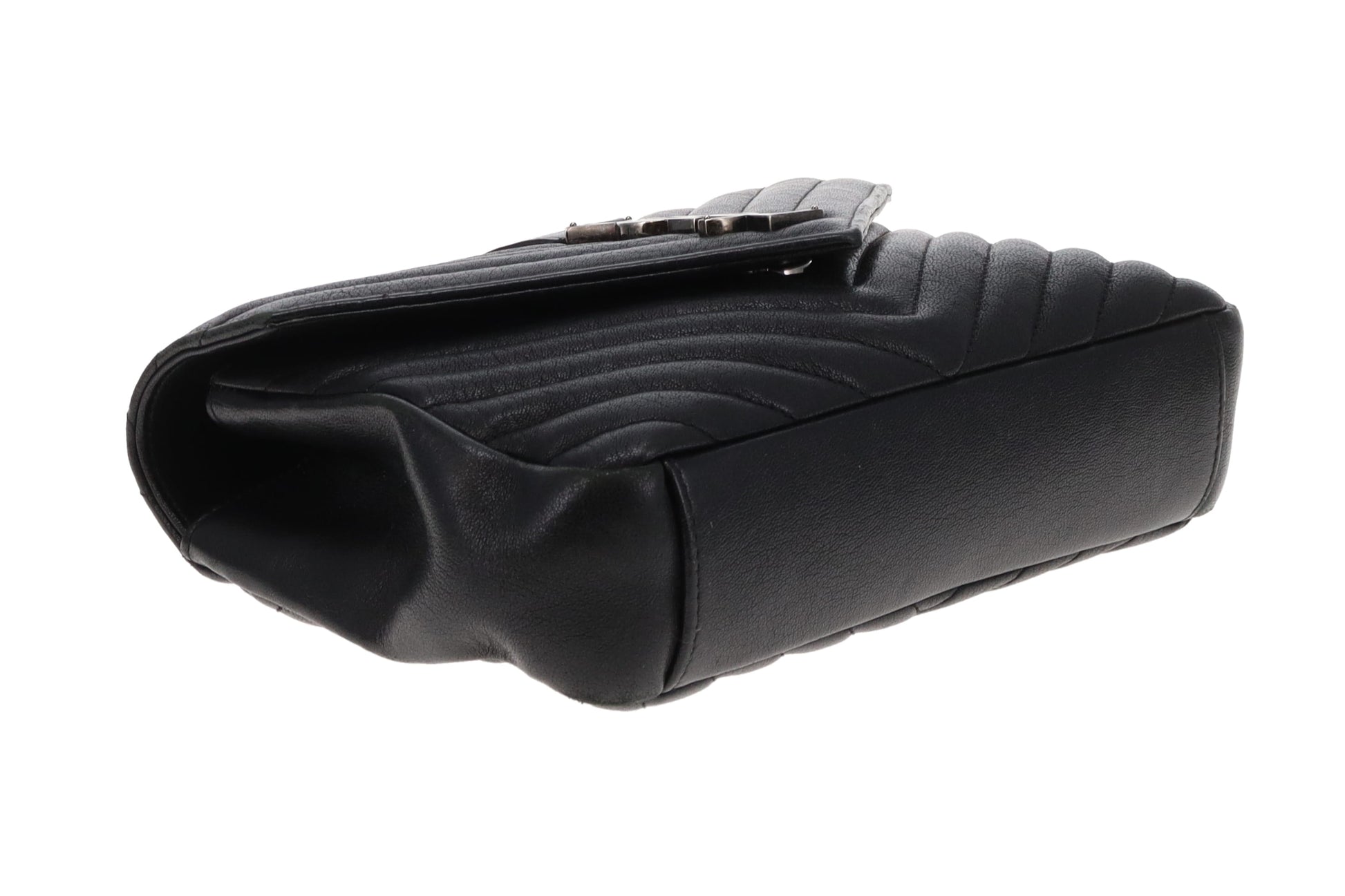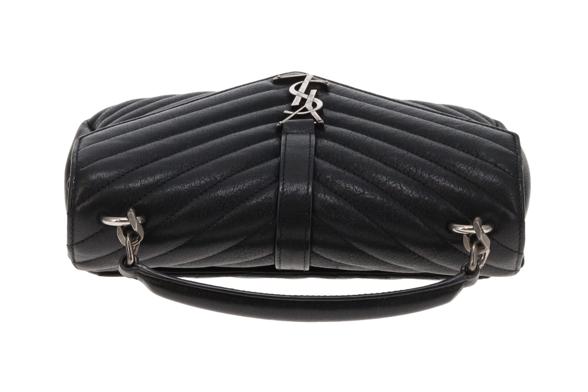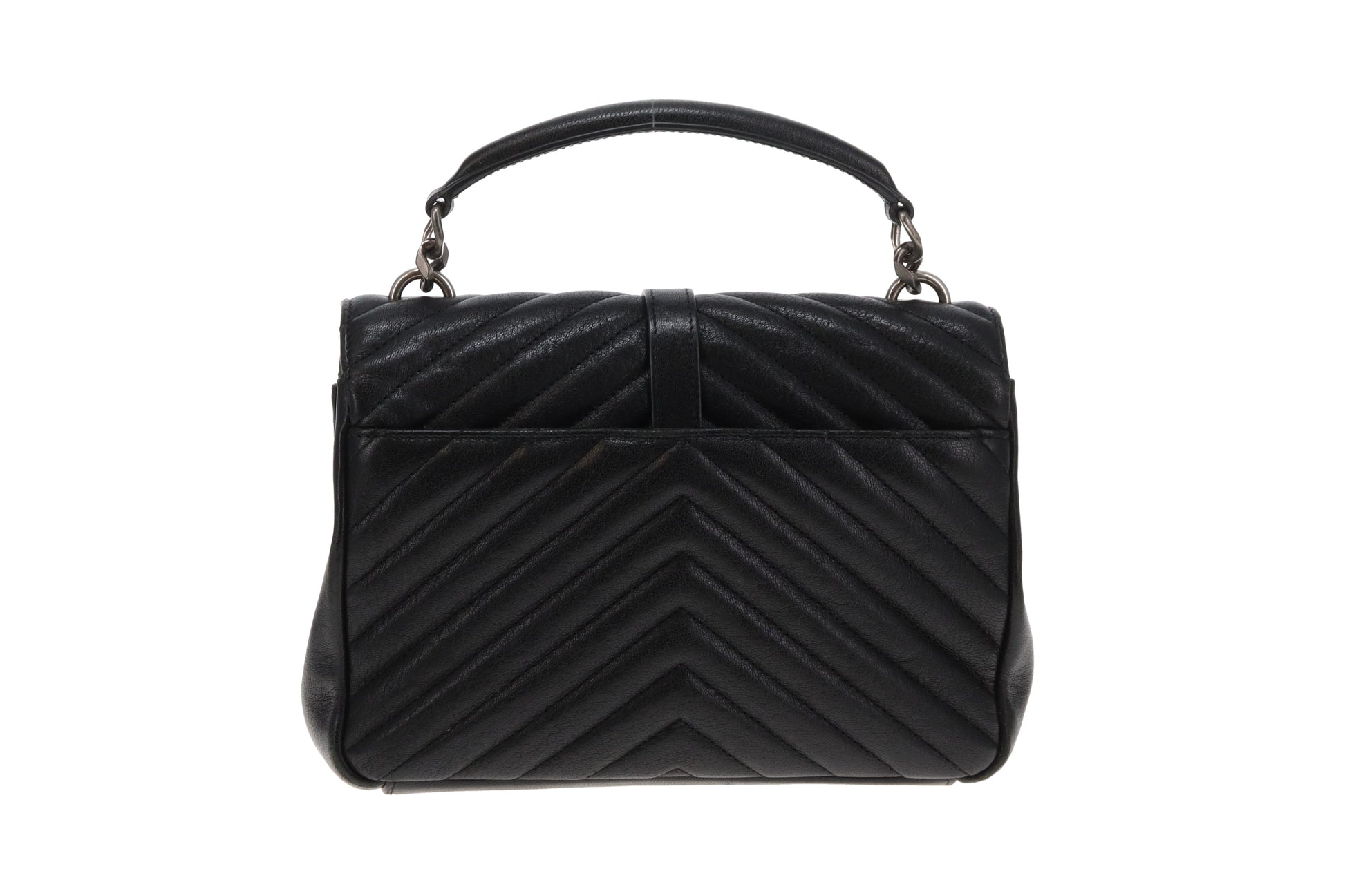 Saint Laurent College Bag Medium Black Chevron Leather 2017